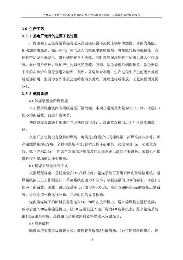 吉林省公主嶺市中心城區(qū)熱電聯(lián)產(chǎn)集中供熱新建工程竣工環(huán)境保護驗收